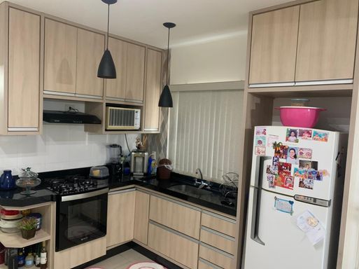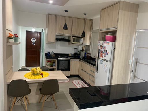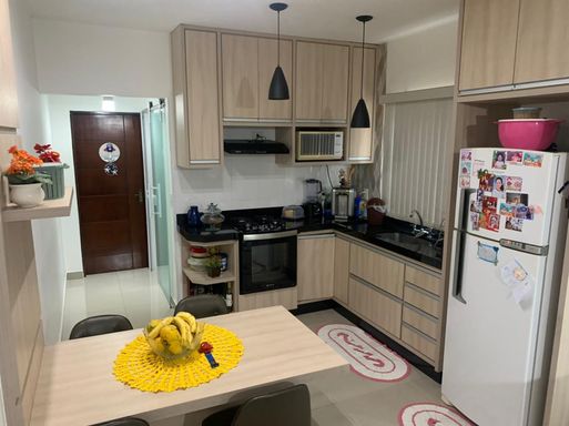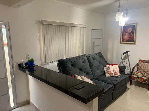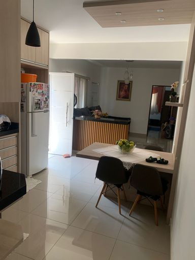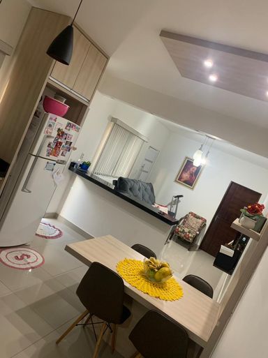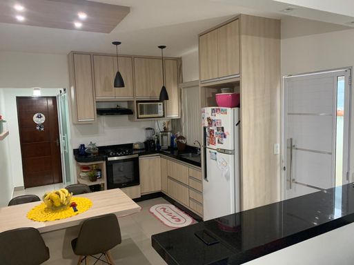 Bela casa com 101,58 metros de área construída, conta com dois dormitórios, sala, cozinha americana com armários planejados ,banheiro com box blindex e pia em granito ,varanda gourmet, área de serviço espaçosa,