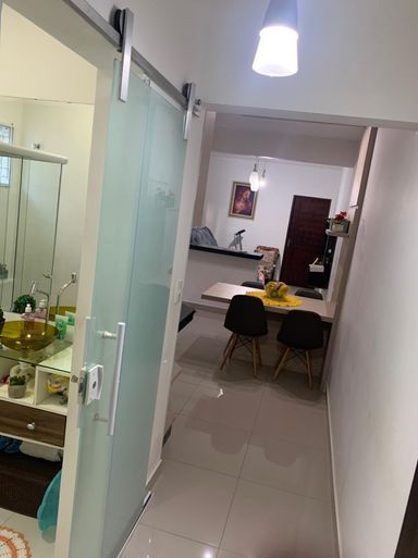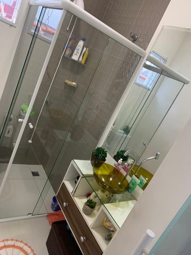 Bela casa reformada com varanda gourmet, banheiro com box e pia em granito